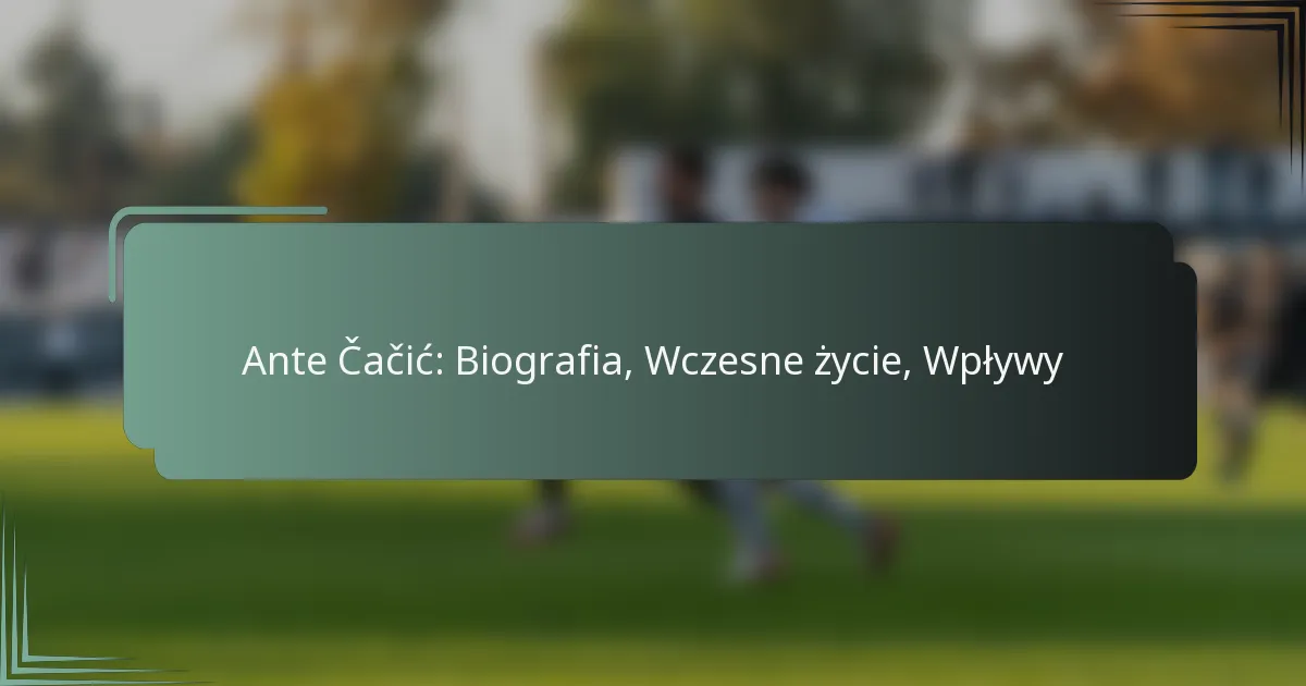 Wczesne życie Ante Čačića kształtowało się w atmosferze wspierającej rodziny oraz edukacji w Chorwacji, gdzie rozwinął pasję do sportu i przywództwa. Jego doświadczenia z okresu formacyjnego oraz wpływowe postacie odegrały kluczową rolę w jego rozwoju jako trenera i człowieka.